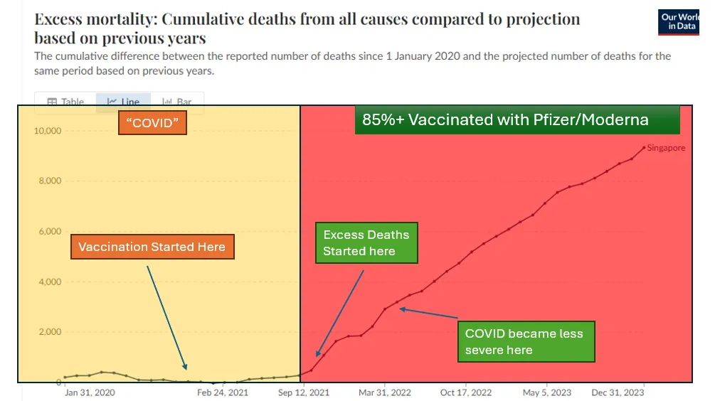 And Singapore's current +35% excess mortality compared with the mortality figures prior to the mRNA vax roll-out is indeed completely off the charts.  The chance of this happening by chance is less than 1 on all the atoms in the universe.