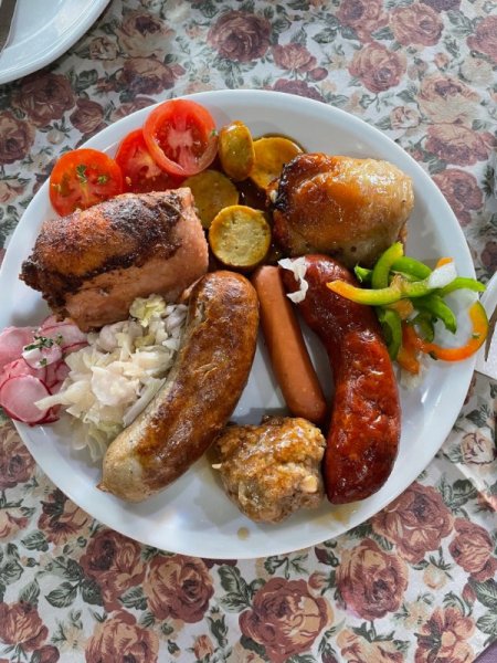 Lunch is either a Thai meat dish or a 'few' plates at the German buffet restaurant.  I don't eat the cakes or pastries, so I have plenty of room for more sausage, pork leg, and chicken!