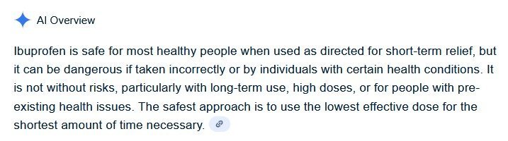 October 19, 2025Oct 19 Once again, be careful where you get your medical advice from, especially when being conveyed by dodgy social media "X" accounts: --AI assisted That said, there are a lot of POTENTIAL side effect and risk factors associated with Ibuprofen, seemingly a lot more than with Tylenol, especially when involving prolonged use: https://www.webmd.com/drugs/2/drug-5166-9368/ibuprofen-oral/ibuprofen-oral/details#uses Get your advice and guidance on medications from reputable, credible sources.