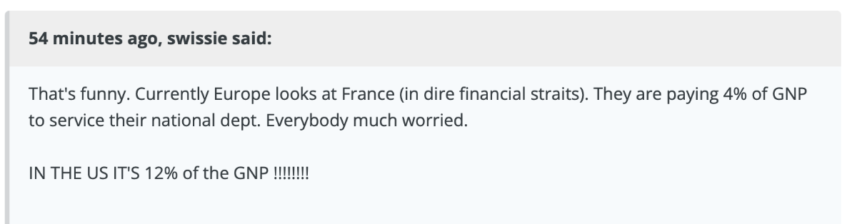 It's not "Technicalities".   The number you posted about the USA's cost to service the national debt as a percentage of GNP was incorrect.   I corrected your error, but you made a stupid comment instead of admitting your mistake.