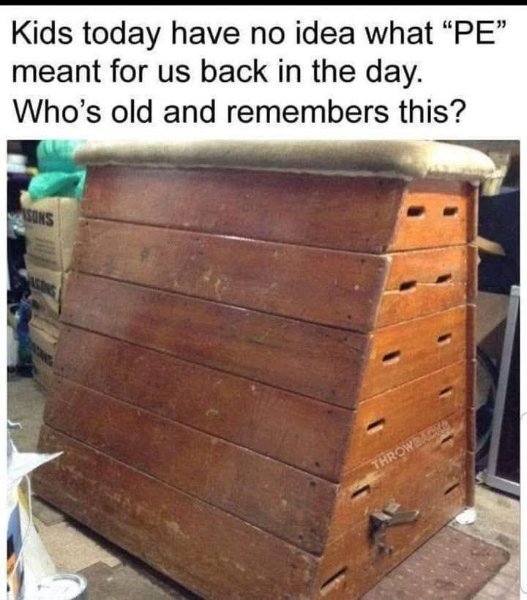I never liked the vaulting horse much but I preferred that to the wall bars or the stupid climbing climbing ropes.