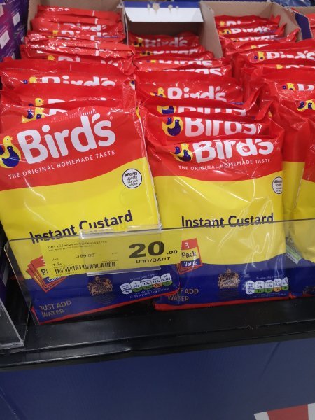 A multipack of Cadbury chocolate buttons for 20 or 29 baht (sorry, picture didn't come out),  and 3 Pack of Birds custard: