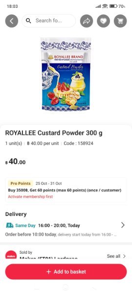 @scubascuba3 That's the brand of custard powder I used for my Christmas puddings. Bought in Friendship. I don't eat custard very often and it's a relatively large pack, so it's been sitting in the cupboard for quite a long time. So those small packs of Birds custard for 20 baht may be convenient. Not sure that I would pay more than that for them anyway.