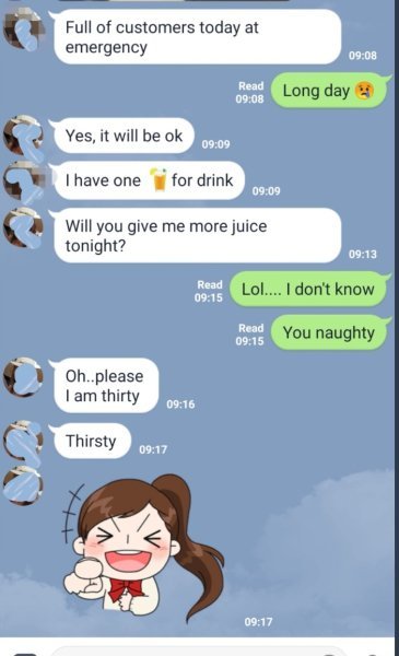 Man, all this talk and your line chats are amateur hour. Here is a short snipped from when I was dating a nurse. Her other chats are A LOT funnier and hornier than this