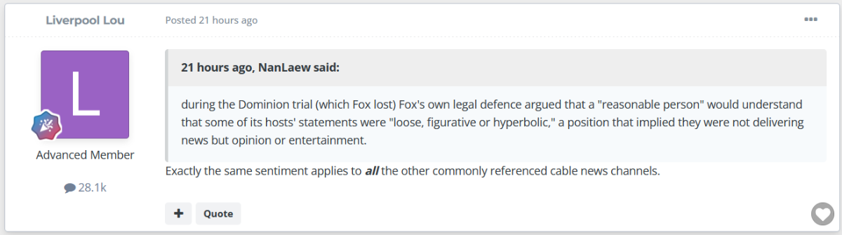 I think the problem with a lot of people is they struggle between actual news (based on facts) and opinion. Fox doesn't even call itself news any more but rather an 'entertainment media' but you wouldn't have guessed that from the more rabid posters here on AN who think it's the word of God.