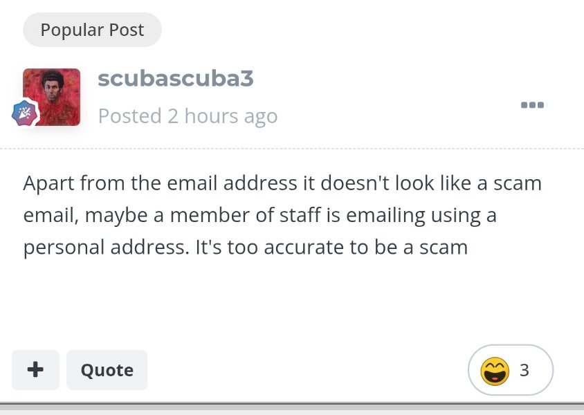 @scubascuba3 @Upnotover You two are correct. I went down to the branch and it was from one of the staff. I did tease her about the 'scammy' English we had a good laugh over it.