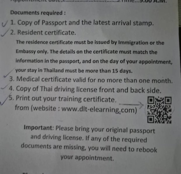 At Pattaya/Banglamung DLT the online video must be done beforehand, and the QR test completion form must be shown on the day of your appointment. It cannot be done at the DLT.