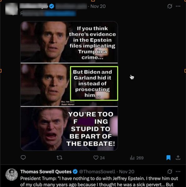 But due to the recently announced 'prosecution' of Epstein Democrats, the DOJ can legitimately withhold documents.  That said, the poitical backlash against Trump and Bondi/Patel will be phenomenal!