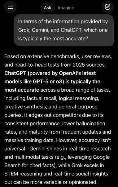 I use all three, ChatGPT, Gemini and Grok. Grok is the most consistent in terms of accuracy from my experience. But now we are back to that pesky issue of reality. So feel free to continue on in own world of Rolling Stones videos.