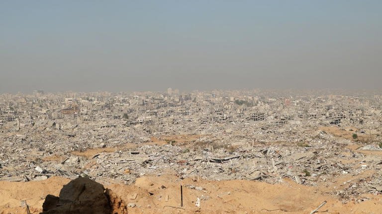 'Patchwork of dust and misery': The Yellow Line dividing Gaza - where only skeletons of buildings remain© Sky