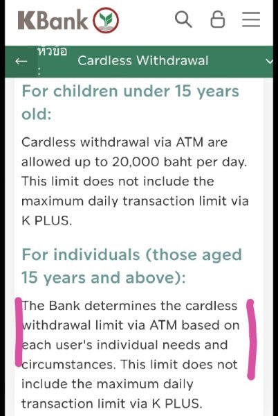 Kbank - Cardless Cash withdrawal change now only 20k per day?