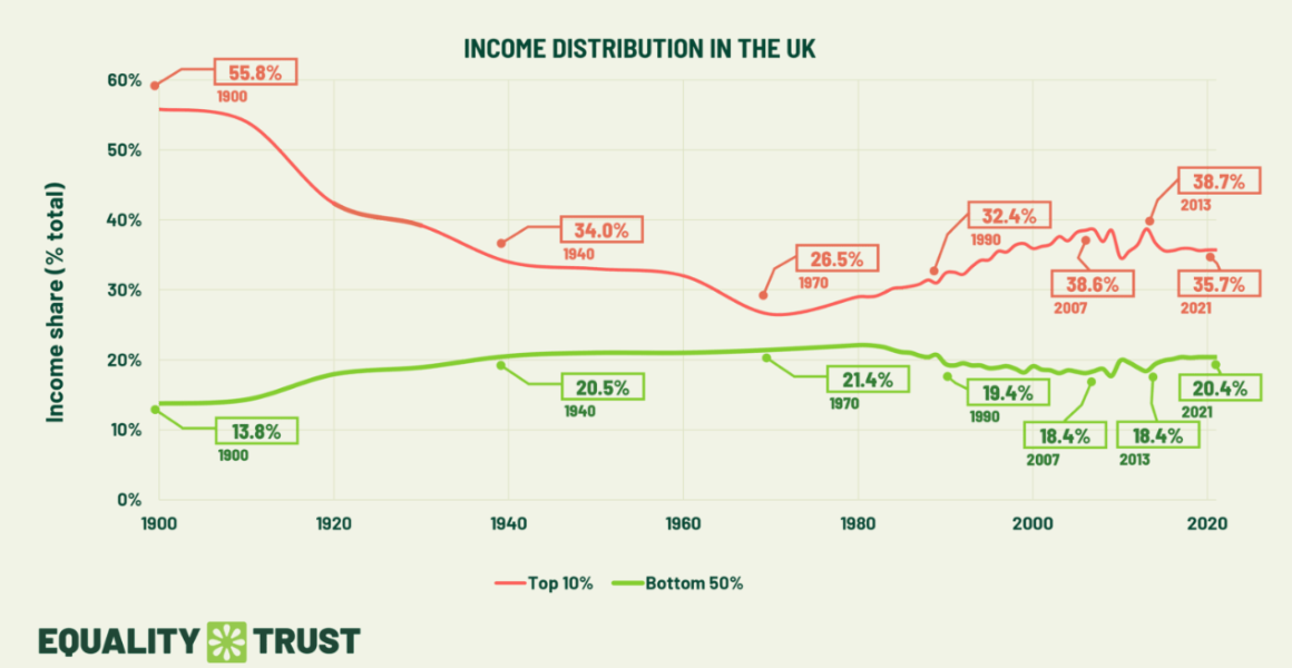 If you wish to rely on the UK, you can see that income distribution disparity has  reduced since 1900.