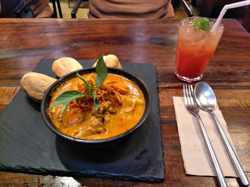 Cambodian chicken curry, fresh bread rolls, and sex on the beach!