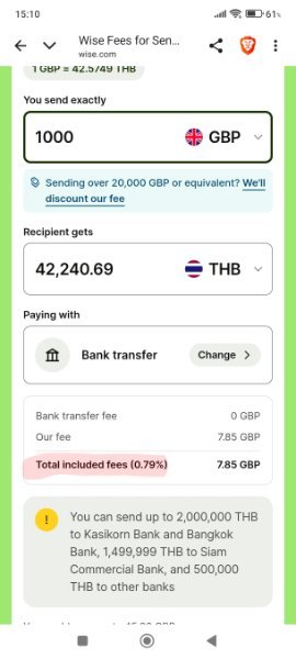 Wise fee GBP to THB gone up i think