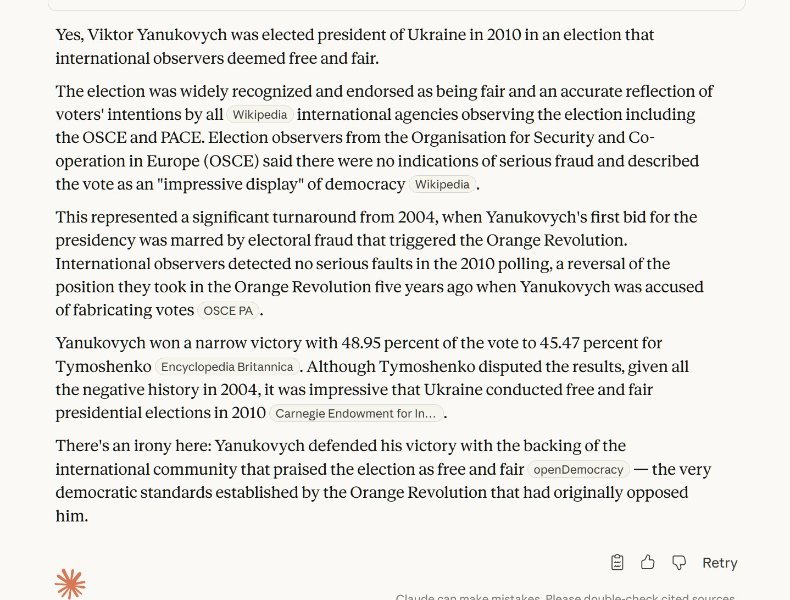 Oh and by your logic the Januray 6th folks were justified as they didn't garee with the outcome of the election.There was a process the ballot box and Yanukovych tried to juggle the desire for indepenecne with a realisation of the inherent danger of Russia - I call that wise and cautious. But that's water under the bridge now sadly.