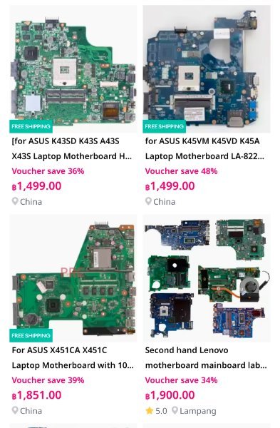 November 27, 2025Nov 27 23 minutes ago, Mason45 said: Does anybody know how much would it cost to replace a ASUS notebook motherboard in Pattaya. I know it could be quite expensive but this notebook is the best I've ever had and it's worth keeping. Depends exactly what specs you need. A quick search on InvadeIT shows this - https://www.invadeit.co.th/brand/asus/motherboards/ Have a look on an Asus site for your specific motherboard and see what they are asking?