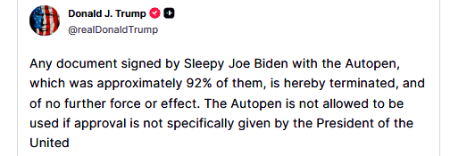 Trump to void all docs allegedly signed by Biden with autopen