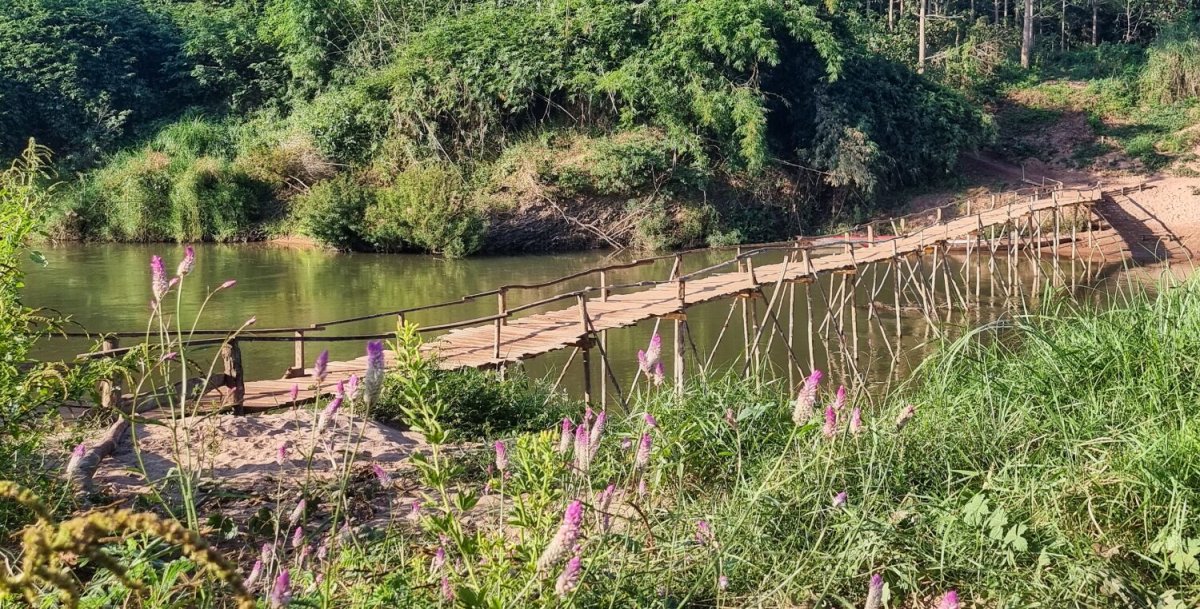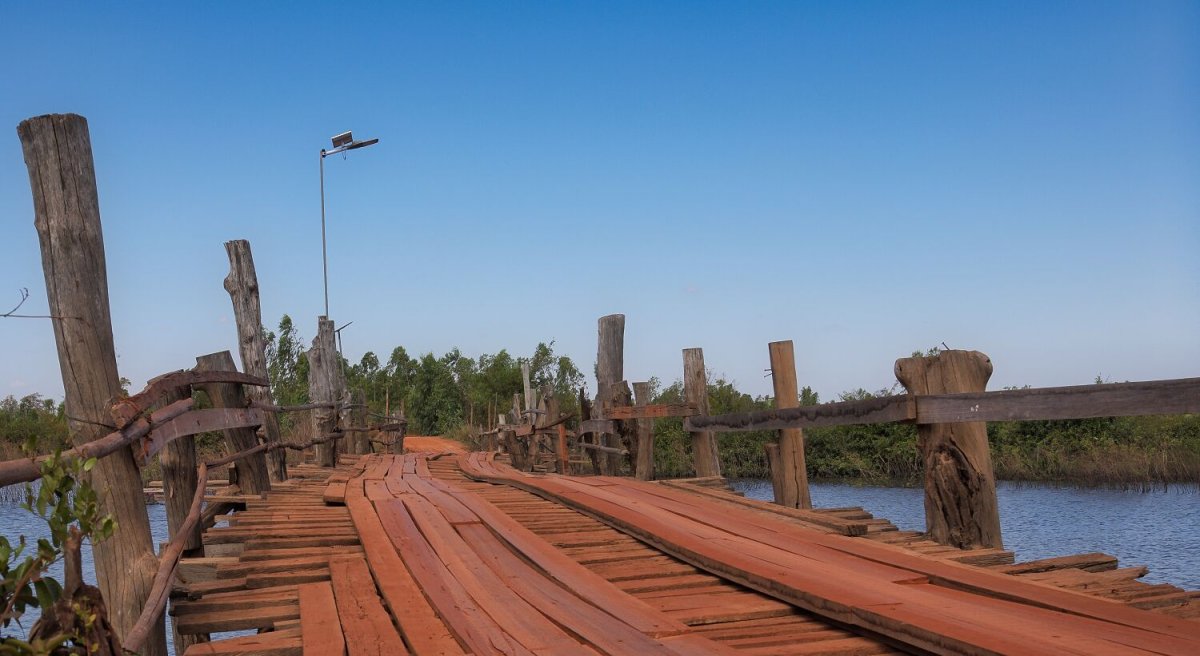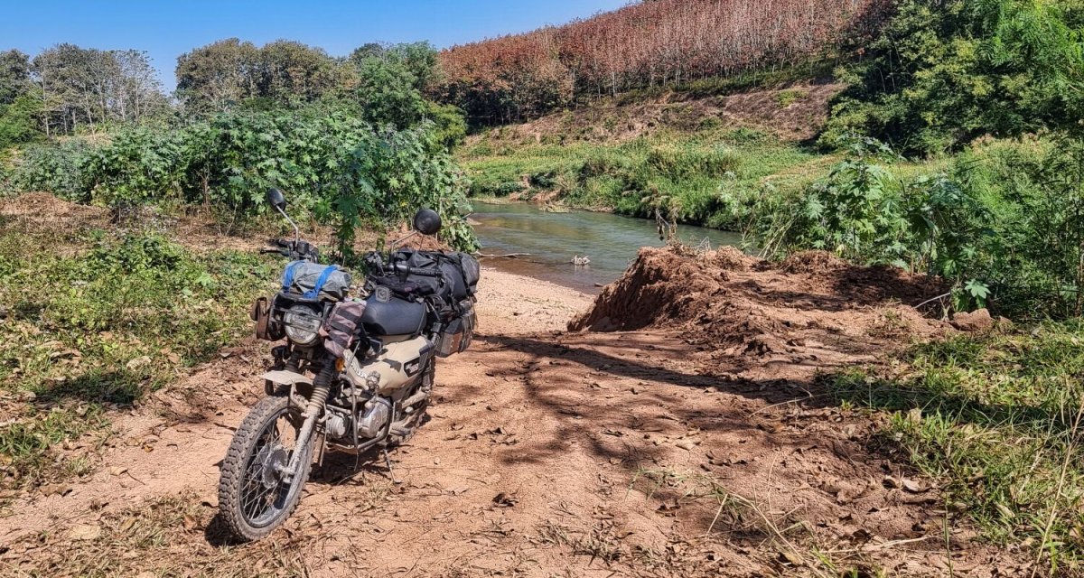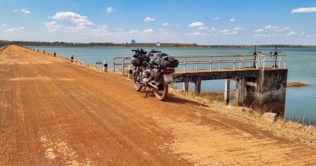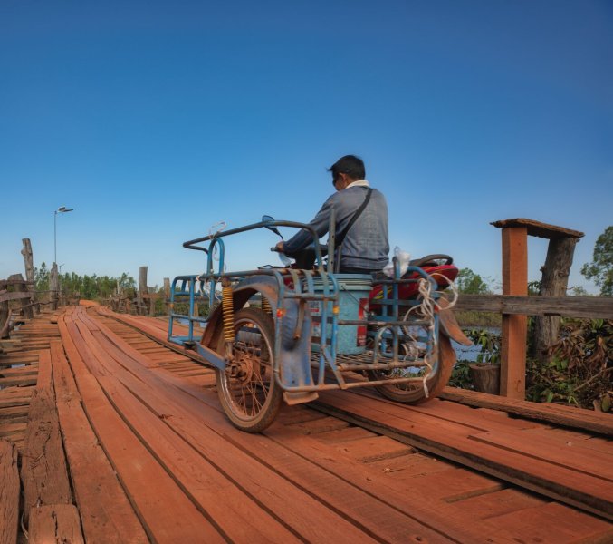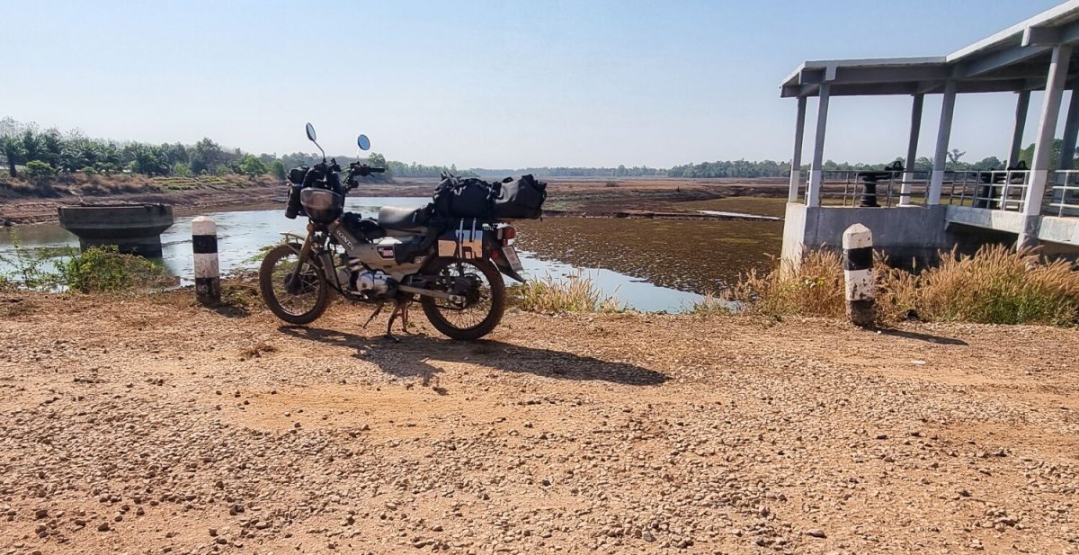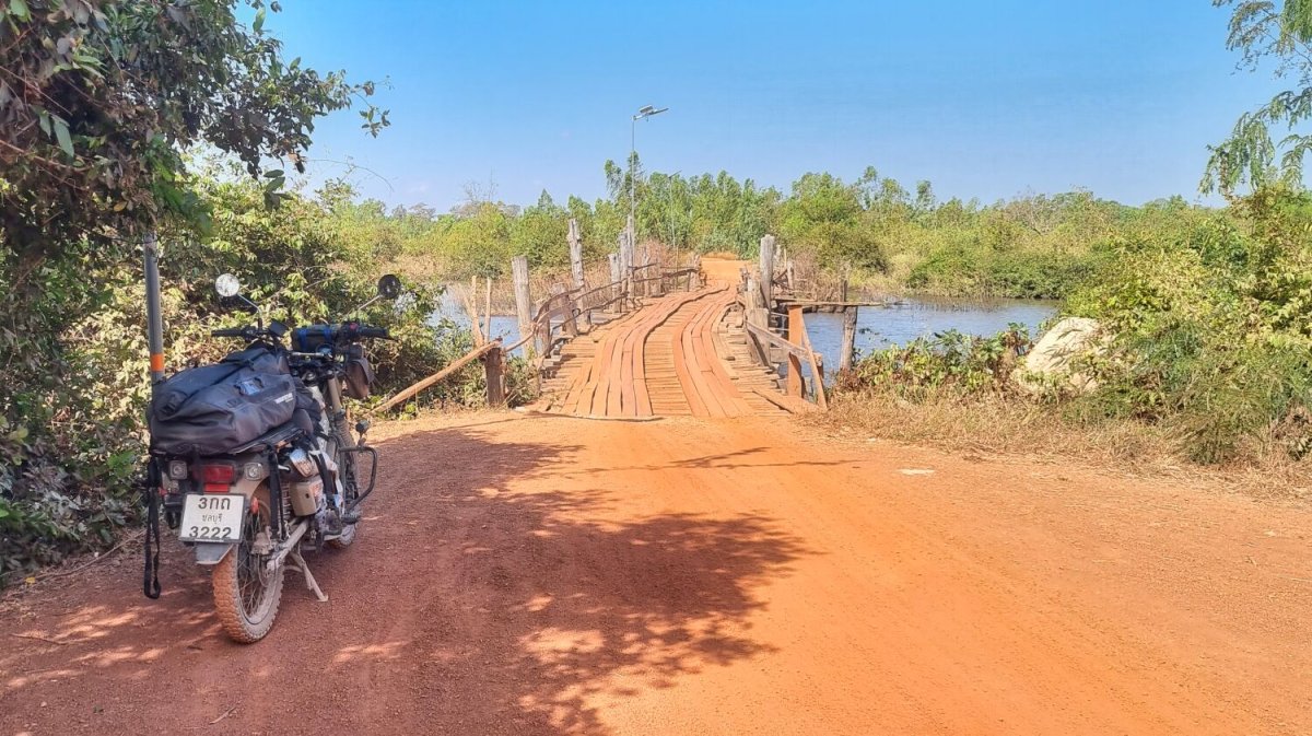 Today I rode south alongside the Mekong River before cutting inland to a wooden bridge I found last time I was here.