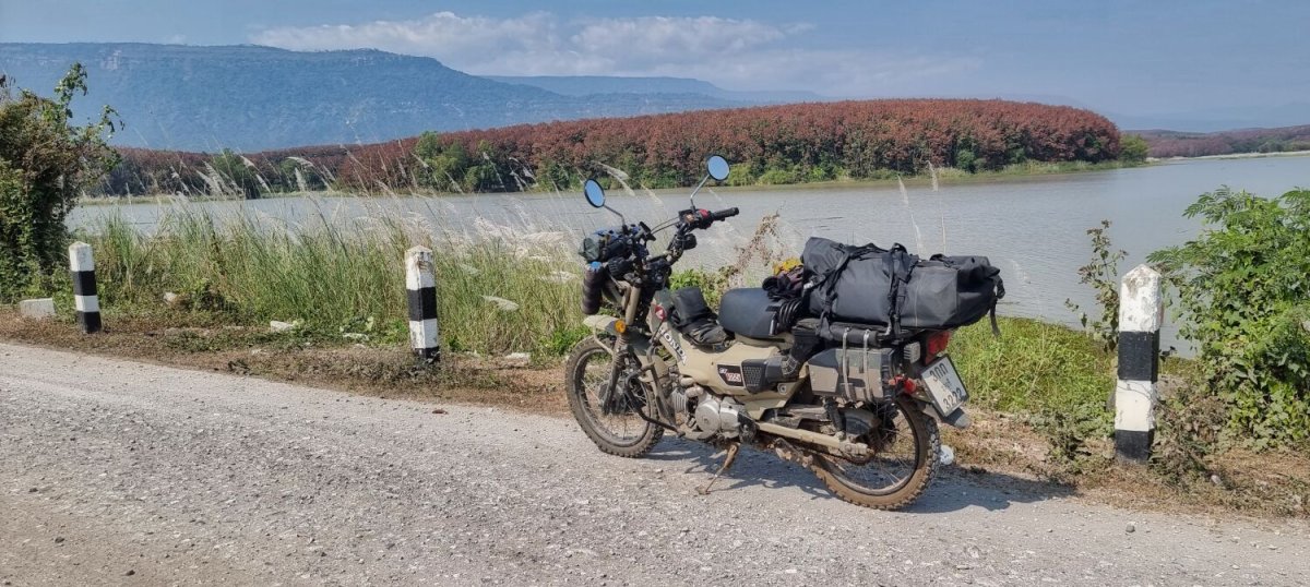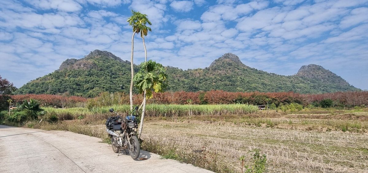 Day 30 and new year’s day, I decided to ride a loop to Tha Chomphu White Bridge and the weir Here.   Very busy with tourists being a holiday. After taking photo the ride north was nice and the R1229 w