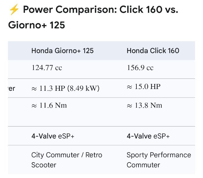 That's not superior to Click 160 in any way, it's a downgrade..., smaller wheels and less power..., smaller scooter, designed for tiny Asian girls...! 😉