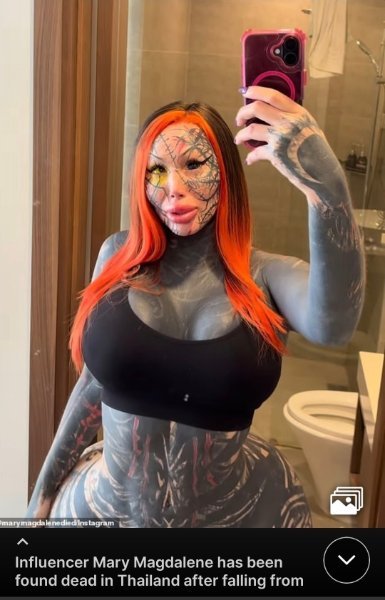 Mary Magdalene, whose real name was Denise Ivonne Jarvis Gongora, was a 33-year-old Mexican-Canadian who gained fame for documenting extreme cosmetic surgeries online. Her fall from a ninth-floor balcony is still under investigation by local authorities. No further details have been released, as police continue to examine the circumstances of her death.