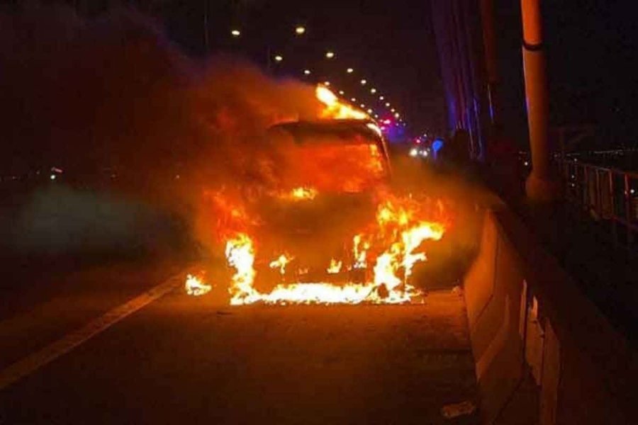 A couple's recently acquired second-hand Toyota Avanza caught fire before reaching home, causing a significant scare but resulting in no injuries. The incident took place at 7:30 pm on December 11 on Kanchanaphisek Bridge, Samut Prakan. Phra Pradaeng Police, local firefighters, and rescue teams quickly responded, extinguishing the fire within 10 minutes.