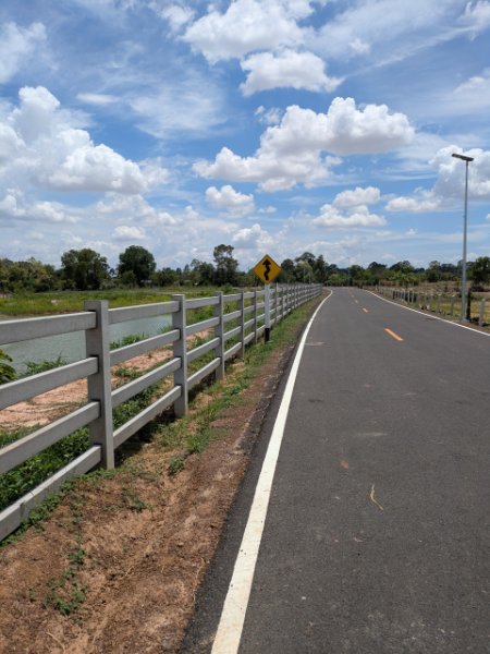 We mostly have a barbed-wire fence but we used concrete rails next to our pond because the local villagers were concerned that somebody might drive off the road and drown.