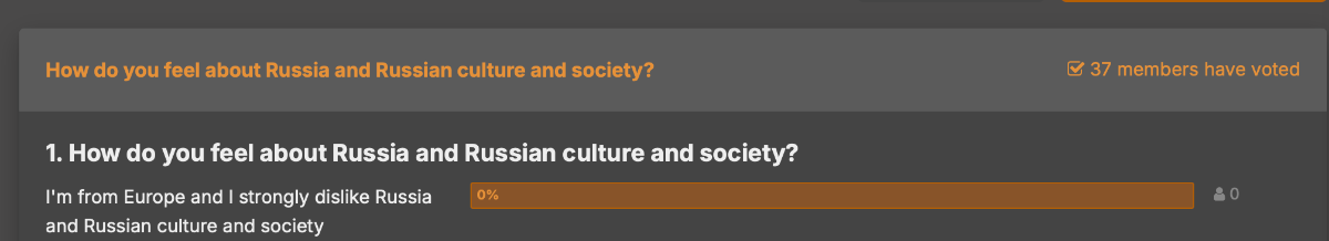 I'm from Europe and I strongly dislike Russia and Russian culture and society2%1