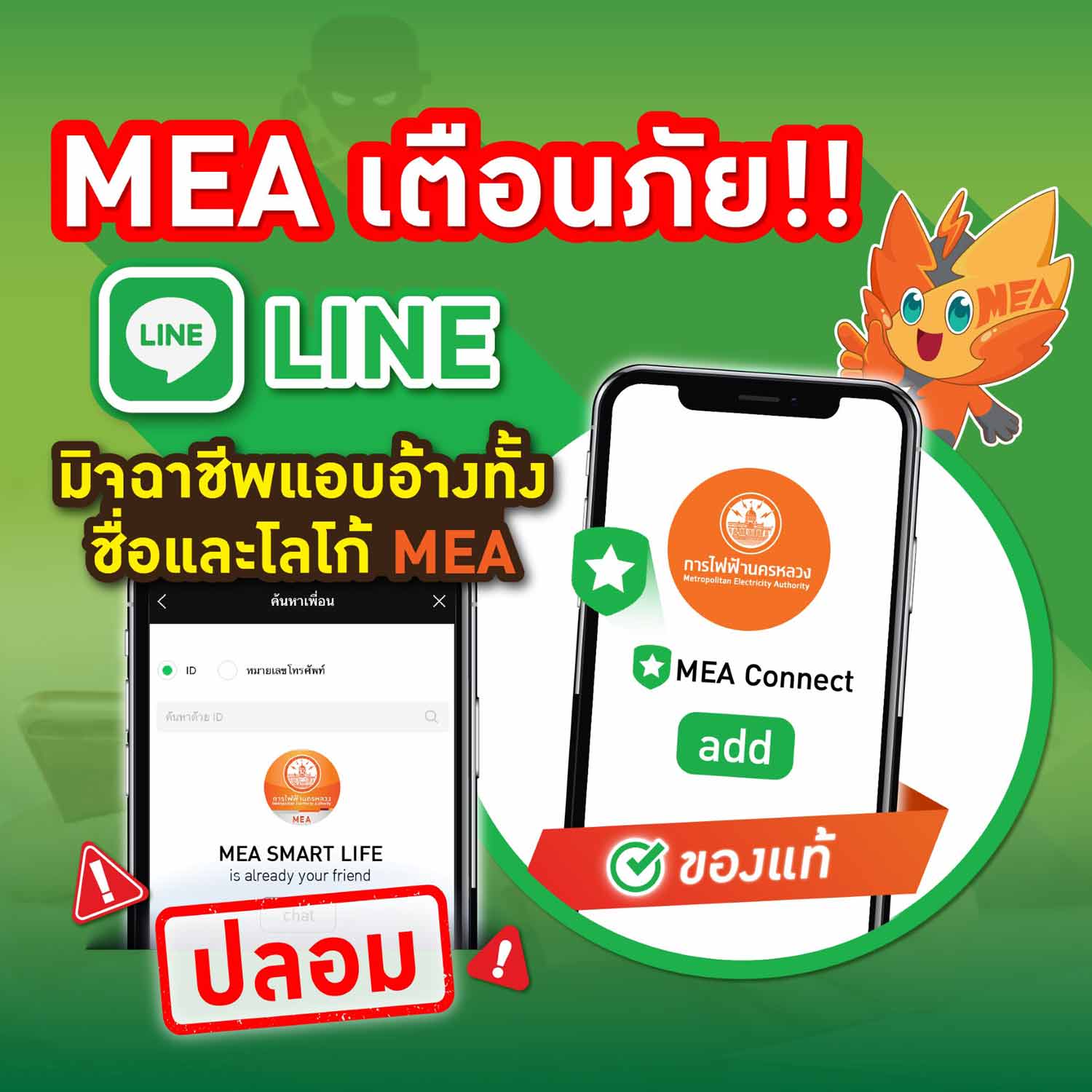 MEA Warns Public of Scammers Posing as Officials on LINE