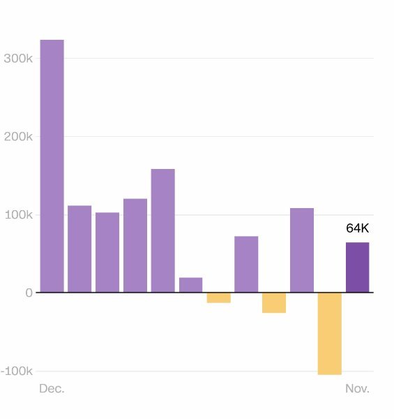 "Unemployment rose to a four-year high of 4.6% in November, and the economy added 64,000 jobs last month, new data from the Bureau of Labor Statistics showed Tuesday."