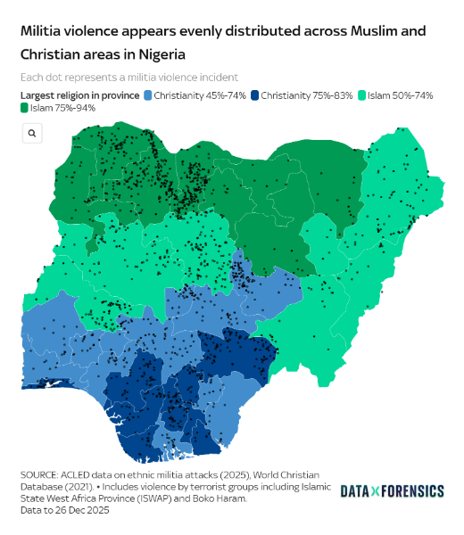 December 29, 2025Dec 29 The more I think about this, the more insane Trump's thinking seems to be. He's not saying 'We're going after terrorists." He's saying "we're going after terrorists who are killing Christians." If terrorists are killing Muslims, we're not going to lose any sleep over it. Just think how destabilizing this is for the Nigerian government which has been forced into allowing US military action on their soil (under threat of cuts to US humanitarian aid if they didn't.) It puts the Nigerian government in the very awkward position of being pro-Christian in a country that is geographically and demographically divided between Christians and Muslims, and is going to predictably make the Nigerian government more unpopular in Muslim areas and likely make the government more of a terrorism target than it already is. Can you imagine how destabilizing it would be for Africa if the most populous country on the continent erupted into civil war? The implications in terms of refugee movements for all of West and North Africa, not to mention Europe, are terrifying to contemplate. This is why I have a sneaking suspicion that the Nigerian government may have given the US military bad intel for the strike locations. If someone in the Nigerian chain of command did do this as a face-saving way to avoid the easily predictable repercussions of such a poorly thought out plan, then I say more power to the Nigerian government for cleverly protecting their sovereignty and avoiding the fallout which was sure to come. The Nigerian people, who are regularly portrayed unfairly on this forum as a nation of love scam and Nigerian prince con artists and drug dealers, just may be smarter than they are given credit for.