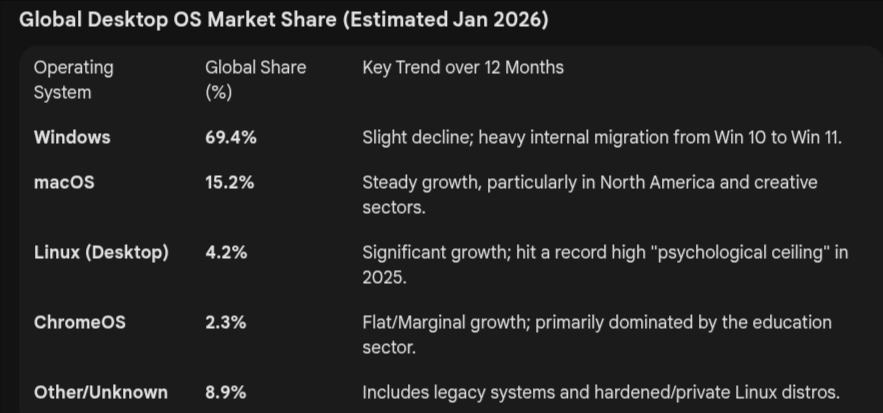 I predict that in 2026, the Linux-desktop uptake, worldwide, will go to 4.5%.