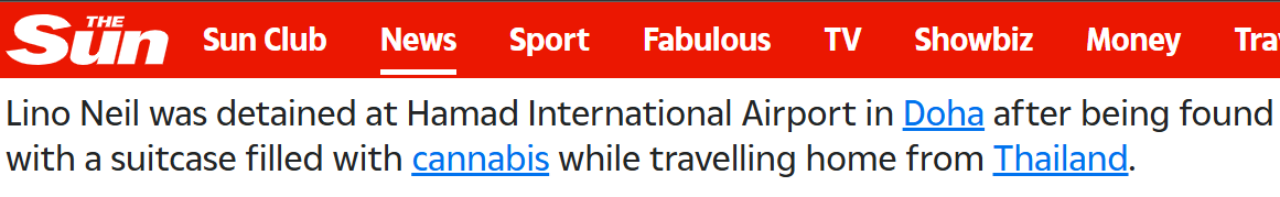 • Lino Neil faces years in a Qatari jail for alleged drug smuggling.