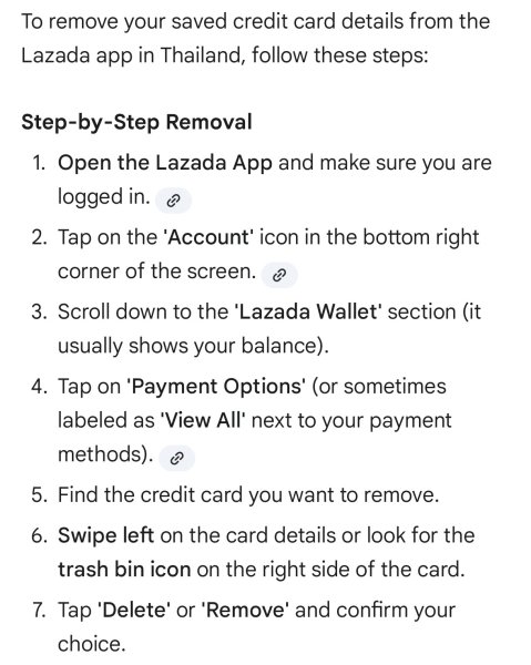 AI is so good. This is how to delete credit card payment details on Lazada, works