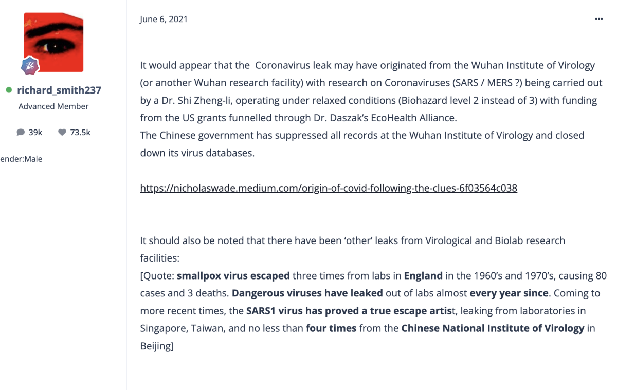 January 19Jan 19 14 minutes ago, Oliver Holzerfilled said:Agreed that skepticism is reasonable. But the lab leak was reflexively labelled a conspiracy theory in large part when Bannon picked up on it and later Trump. Ironic now given that the AN Trump critics who fell in line with the lab leak being a conspiracy narrative have now shoved all their chips into the middle of the poker table shouting "I'm all in!" on the Epstein didn't commit suicide, Trump is involved conspiracy theory.I wrote about the LabLeak Theory in this thread in March 2025:https://aseannow.com/topic/1354684-the-governments-lied-about-the-origin-of-the-covid-pandemic/And also earlier, in this thread in May 2021:https://aseannow.com/topic/1219446-coronavirus-lab-leak-theory-gets-another-look/