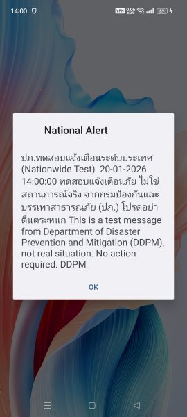 • A nationwide phone alert test is sounding today at 2 p.m. across Thailand.