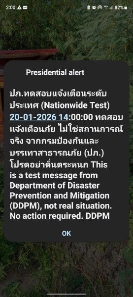 Today at 2pm, a nationwide test of the emergency alert system for cell broadcasts is set to take place in Thailand, announced by the Bangkok Metropolitan Administration (BMA). The exercise will have mobile phones across the country emitting loud warning tones, with officials urging residents not to panic. This trial, conducted by the Department of Disaster Prevention and Mitigation (DDPM), aims to fine-tune the system for public safety enhancement.