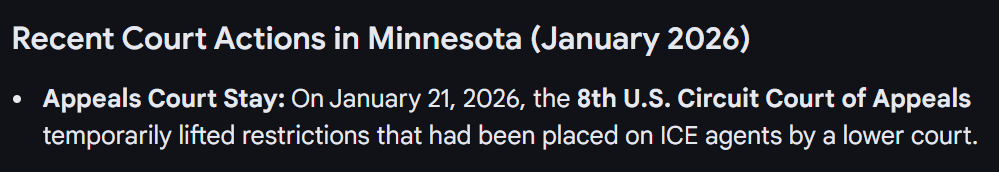 ICE has judicial & administrative warrants, and operating in plain site of news & law enforcement officials. With the support the 8th U.S. Circuit Court of Appeals ...
