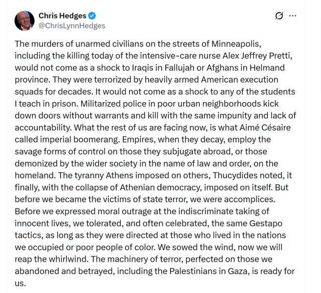 I said when ICE killed Renee Good, that they had started murdering U.S. Citizens, more murders would follow.