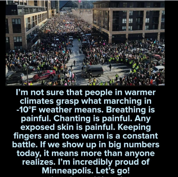 This struggle for justice by the people of Minneapolis is a valiant defense of fundamental rights as decreed in the First Amendment, while federal agents continue to operate with terrifying impunity and government blessing. Each frozen person in the protest is a rebuke to the vile system that places the cruelty of enforcement above the community's basic right to protest against a government bereft of any human decency.