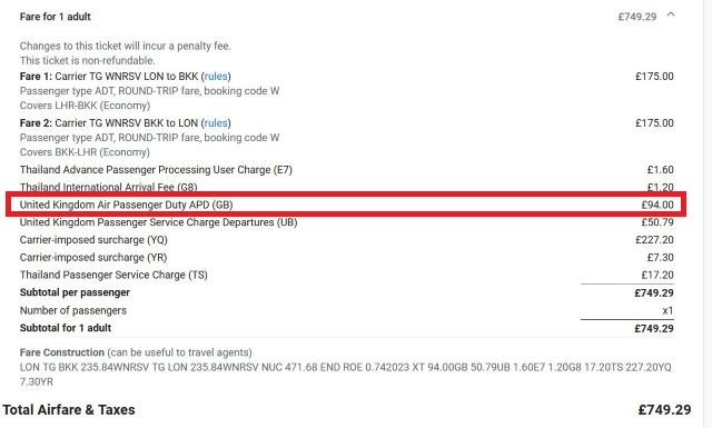 Passengers pay the following in the UK when flying to Thailand. So I doubt if the extra few quid in taxes in Thailand will put them off.