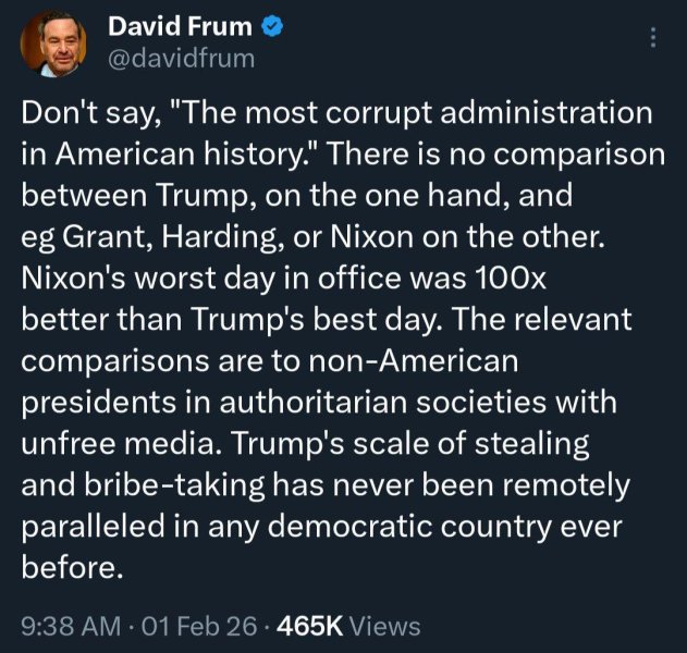 I like this quote. It sums it up nicely, he's not only the most corrupt president in American history by an a huge margin, but he rivals some of the most corrupt dictators throughout history.
