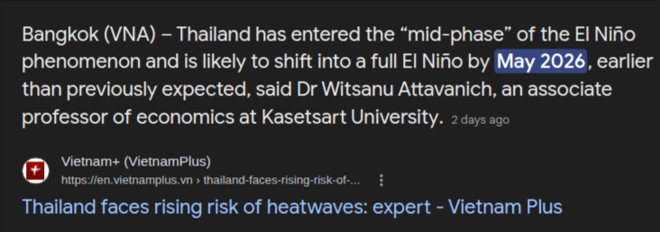 But, apparently, Thailand is now heading into a major El Nino year this year.