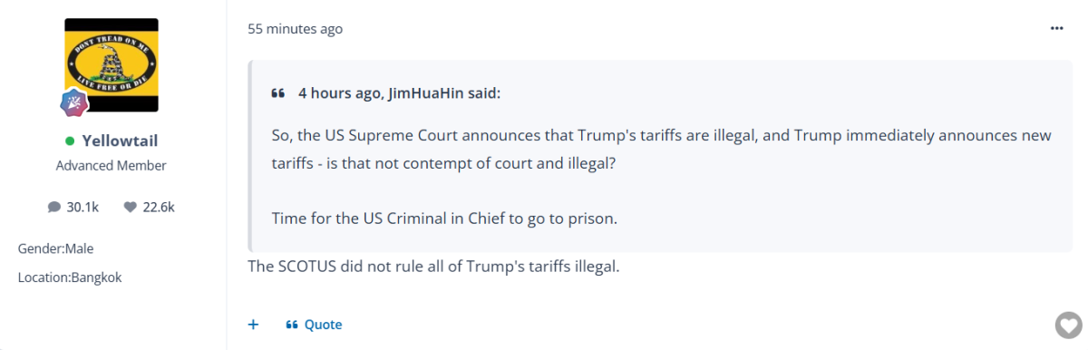 "SCOTUS - Take this (10% Global Tariff on Everything) an put it where the sun don't shine!"