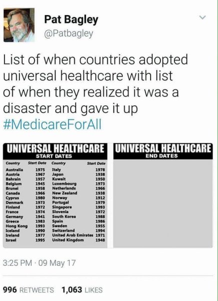 America, which has one of the most horrendously overrated, overpriced, and broken health care systems on the planet. Yikes.