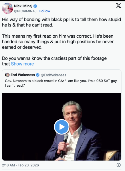 Gavin told an audience that he is a 960 guy on his SATs and he can't read. Is this his way of code switching?