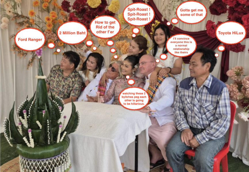 March 2Mar 2 Popular Post 4 hours ago, Geoffggi said:This can only be a Thai Buddhist wedding & not legal outside of Thailand in which case why bother??The follow up in a few years will be glorious thats why bother.......In the news today 2 Austrian men left Thailand broke and disheveled after thai bride strips them of their money.....and dignity. The little they had anyways. This will make a great talks of Thailand story.