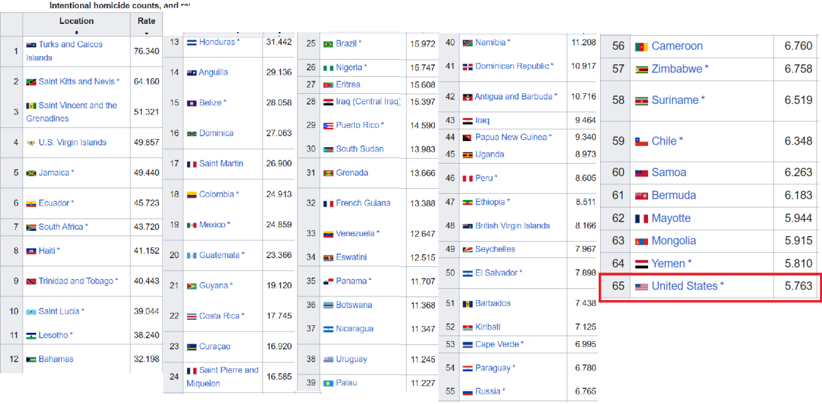 From where I sit, Americans don't do a bad job of killing each other either.