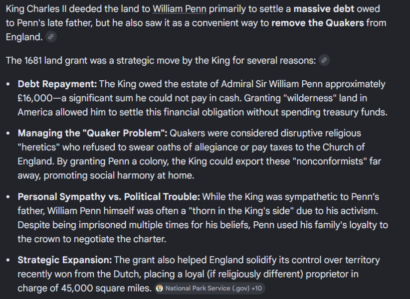 My original ancestors came over with William Penn, and even though were deeded land by the King, preferred to negotiate peacefully with the Lenape. As my people settled in their area, sort of, the Brandywine Valley as it's known today.