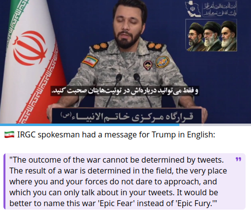 Iran's troll of President Trump. Quid pro quo methinks! Operation "Epic Fear."
